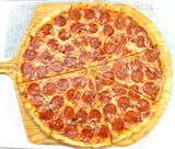14" Pizza on a gluten-free crust. Topped with homemade tomato sauce, pepperoni, and imported finest grande mozzarella.