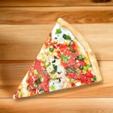 Fresh broccoli, sauteed spinach, roasted peppers, fresh mushrooms, caramelized onions, and fresh garlic topped with our homemade tomato sauce & imported finest grande mozzarella.