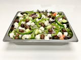 Romaine hearts, red onions, kalamata olives, bell peppers, plum tomatoes, cucumbers, and feta cheese.
